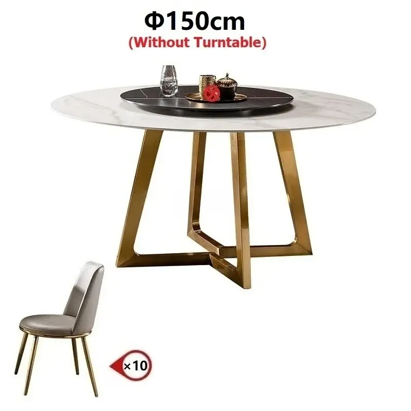 Designer Luxury round Marble Rock Slab dining table set 4 6 chairs mesa tavoli furniture meuble marbre Stainless steel gold base