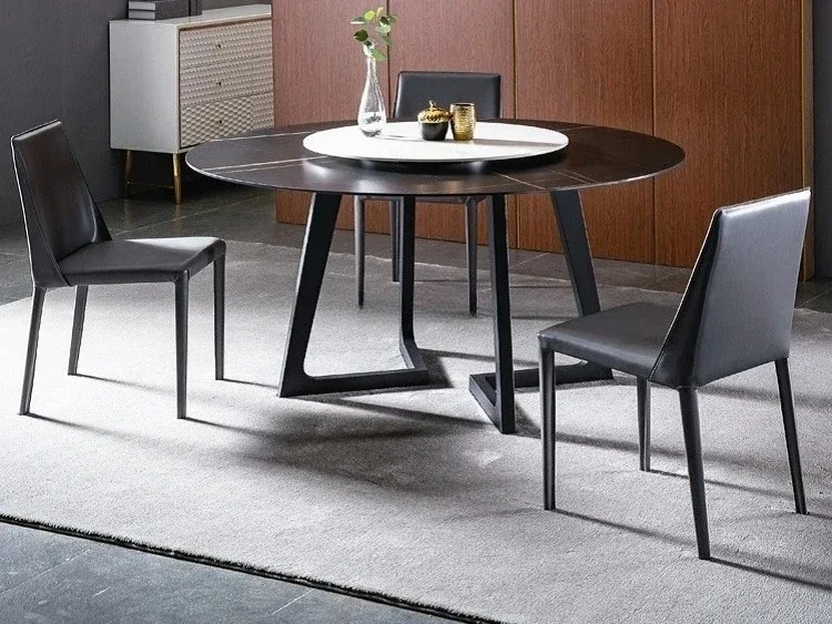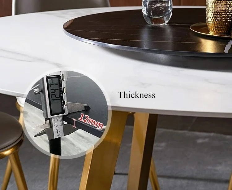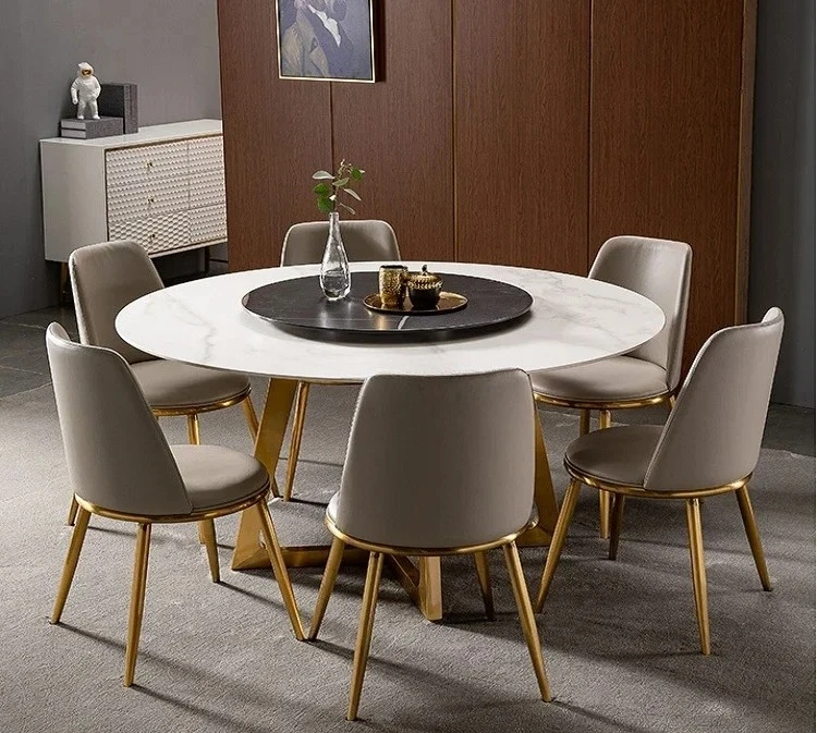 Designer Luxury Round Marble Rock Slab Dining Table Set 4 6 Chairs Mesa Tavoli Furniture Meuble Marbre Stainless Steel Gold Base