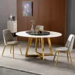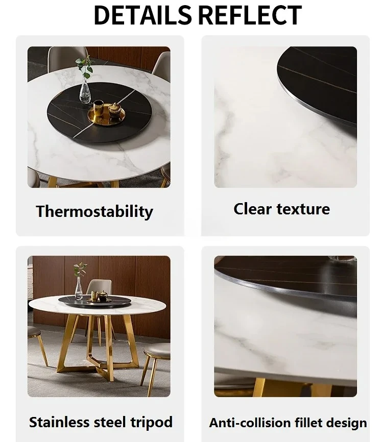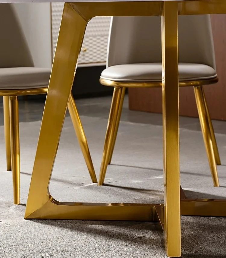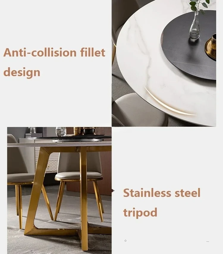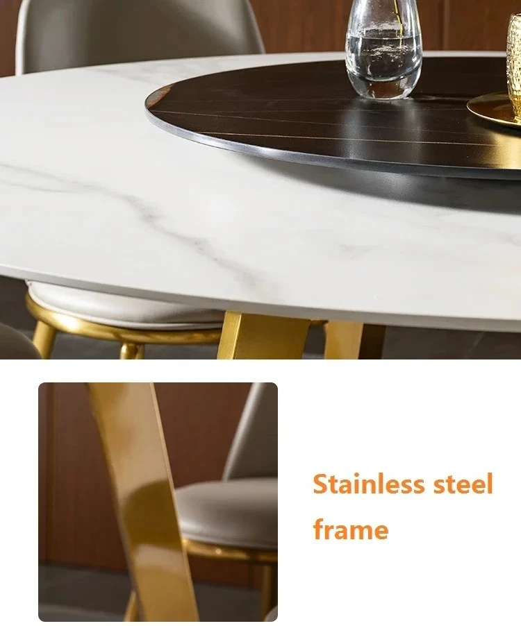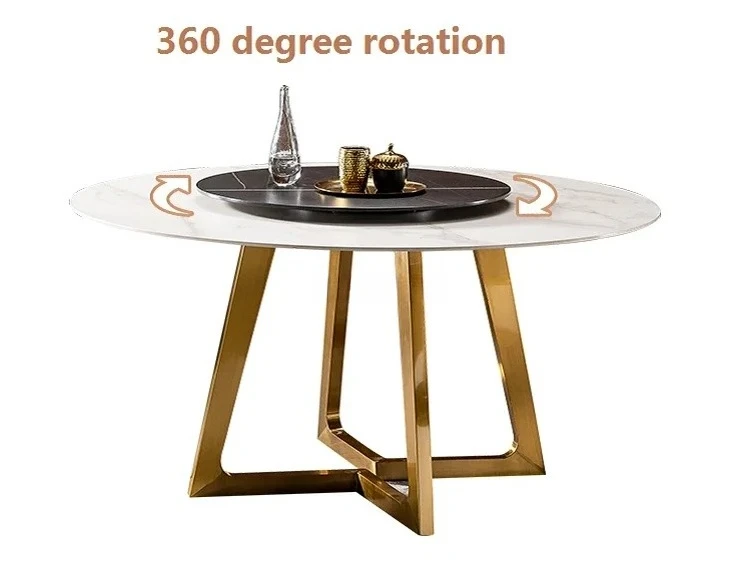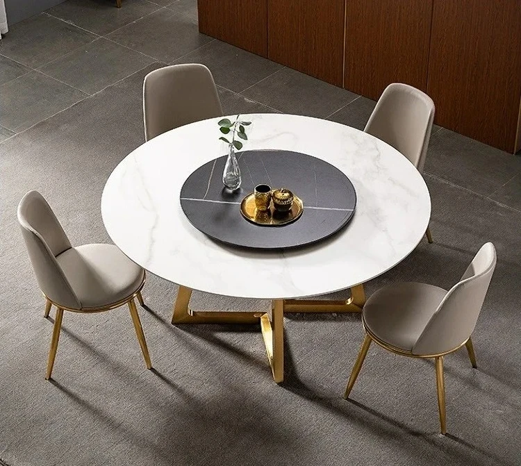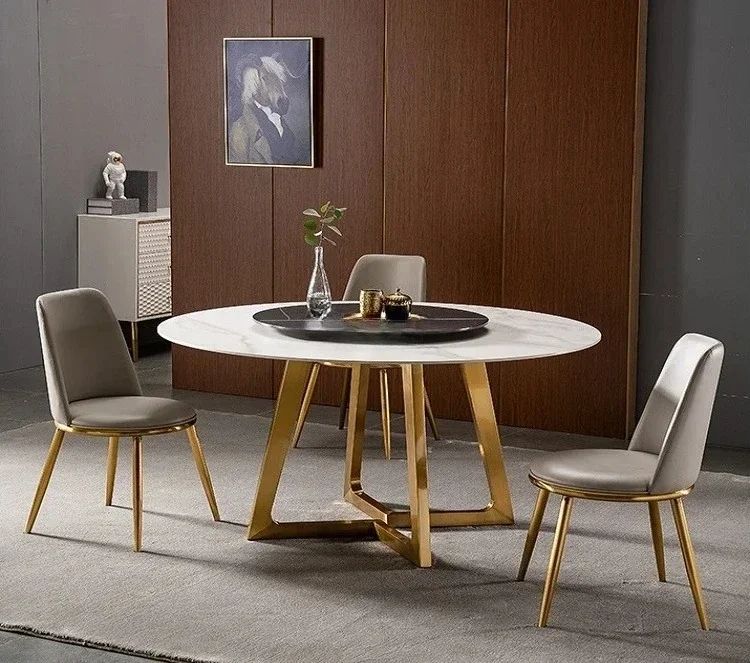 Designer Luxury Round Marble Rock Slab Dining Table Set 4 6 Chairs Mesa Tavoli Furniture Meuble Marbre Stainless Steel Gold Base