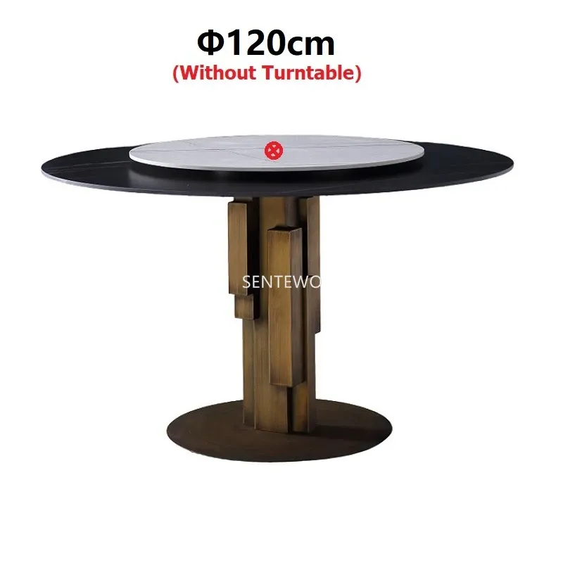 Designer Luxury round Marble Rock Slab dining table set 6 chairs mesa de jantar tablo furniture marbre Stainless steel gold base
