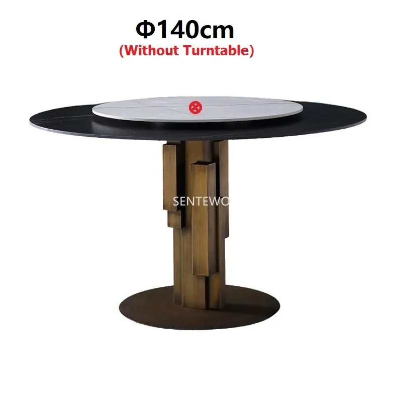 Designer Luxury round Marble Rock Slab dining table set 6 chairs mesa de jantar tablo furniture marbre Stainless steel gold base