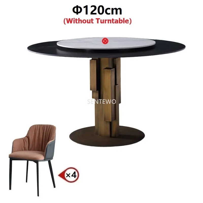 Designer Luxury round Marble Rock Slab dining table set 6 chairs mesa de jantar tablo furniture marbre Stainless steel gold base