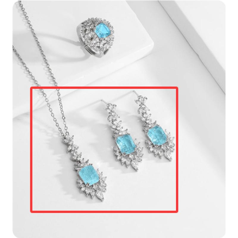 Color: white gold plated (two-piece set), colored gem blue white gold plated (two-piece set)