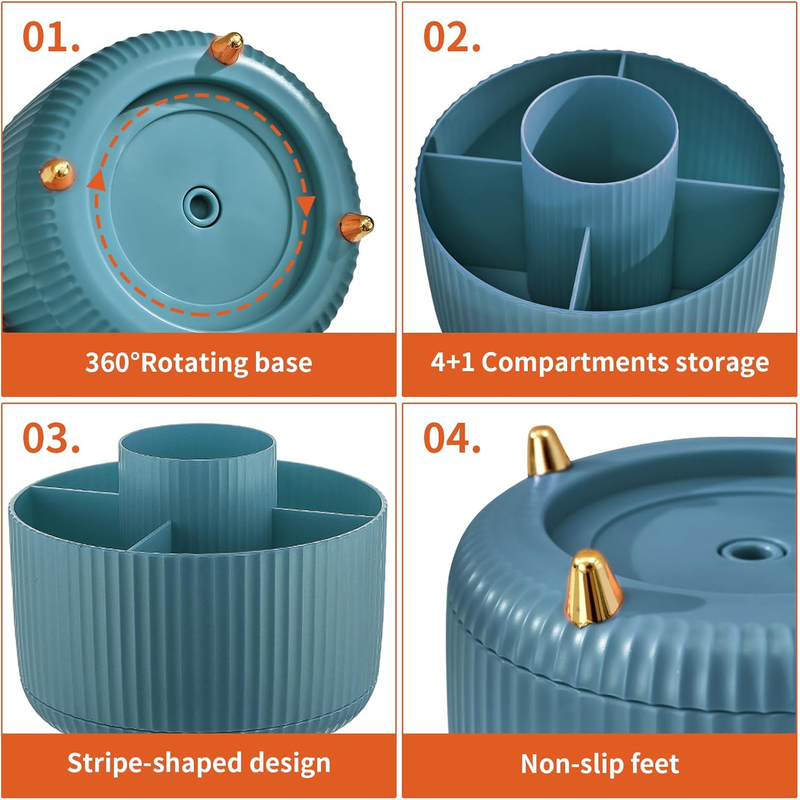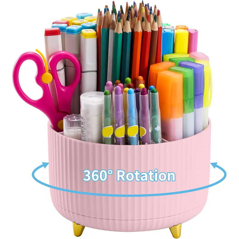 Desk Organizer, 360-Degree Rotating Pen Holder for Desk with 5 Compartments Pencil Organizer, Storage Box Caddy for Office, Home