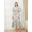 DEVCHATA Elegant Floral Organza Fishtail Long Dress Maxi Luxury Mermaid Evening Dress Puff Sleeve Fashion Slim Party Club Dress