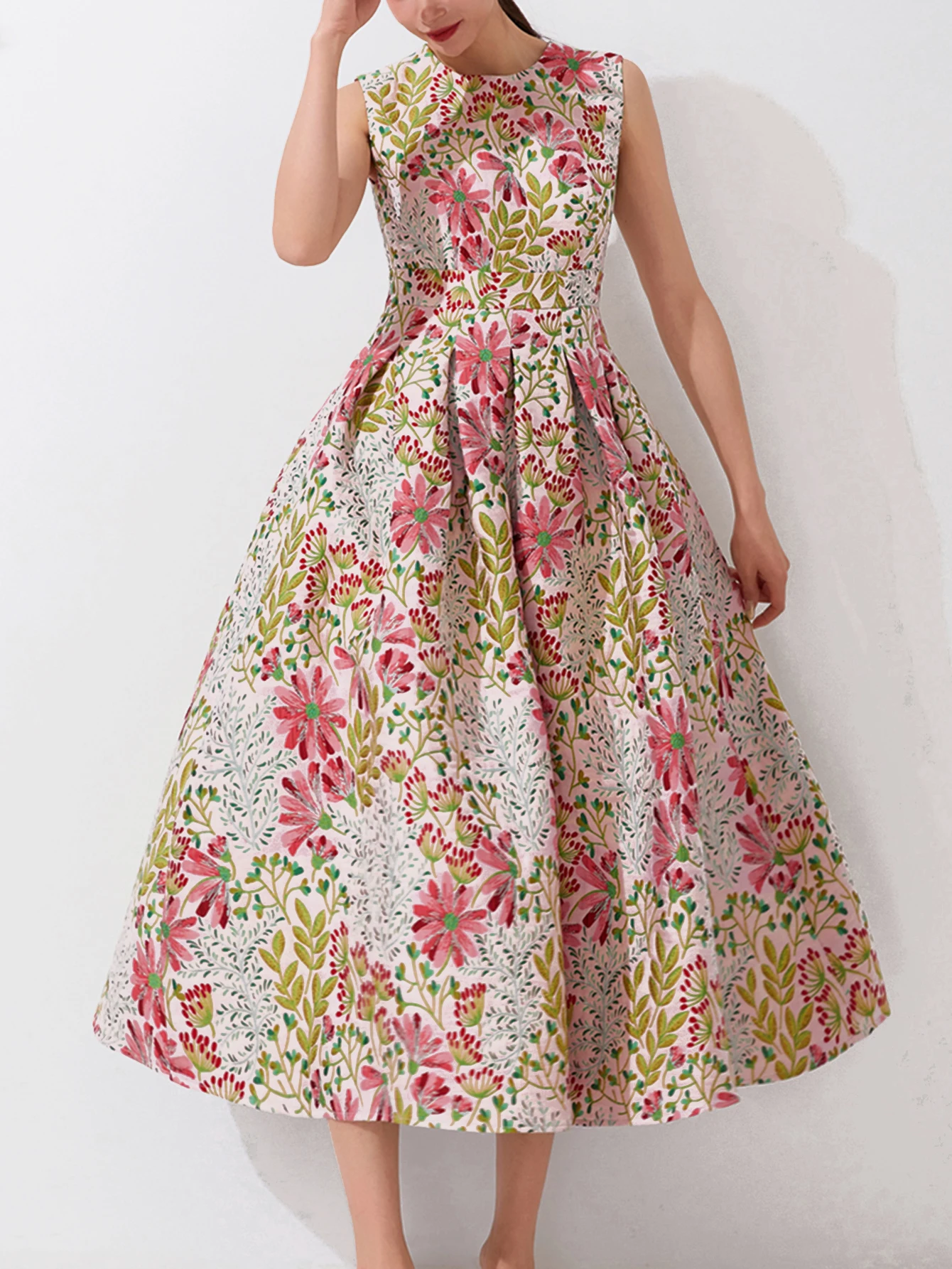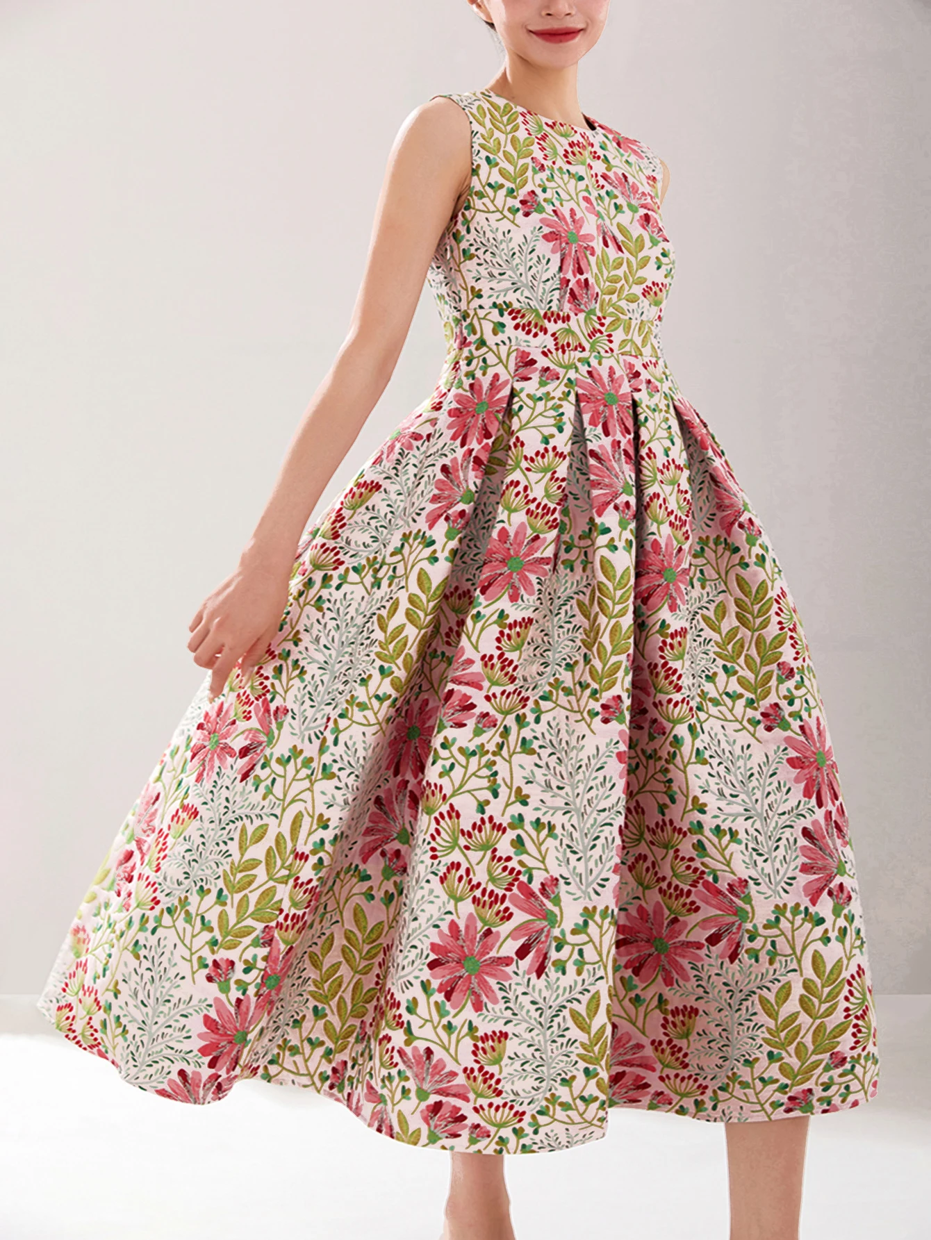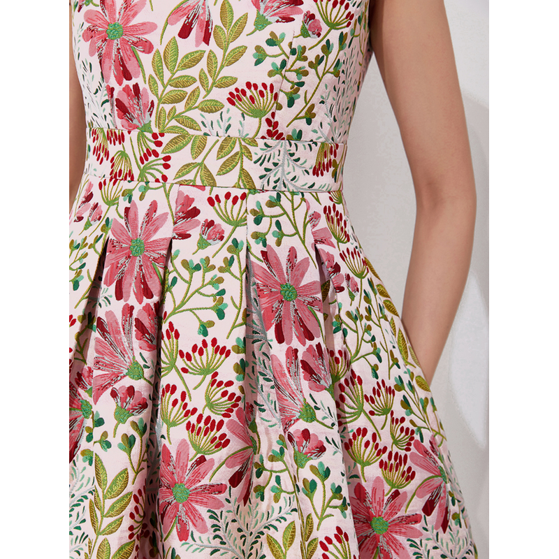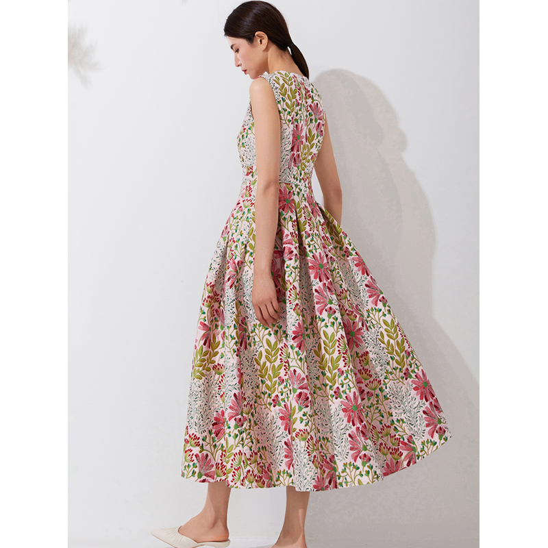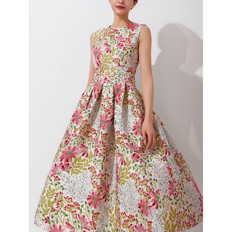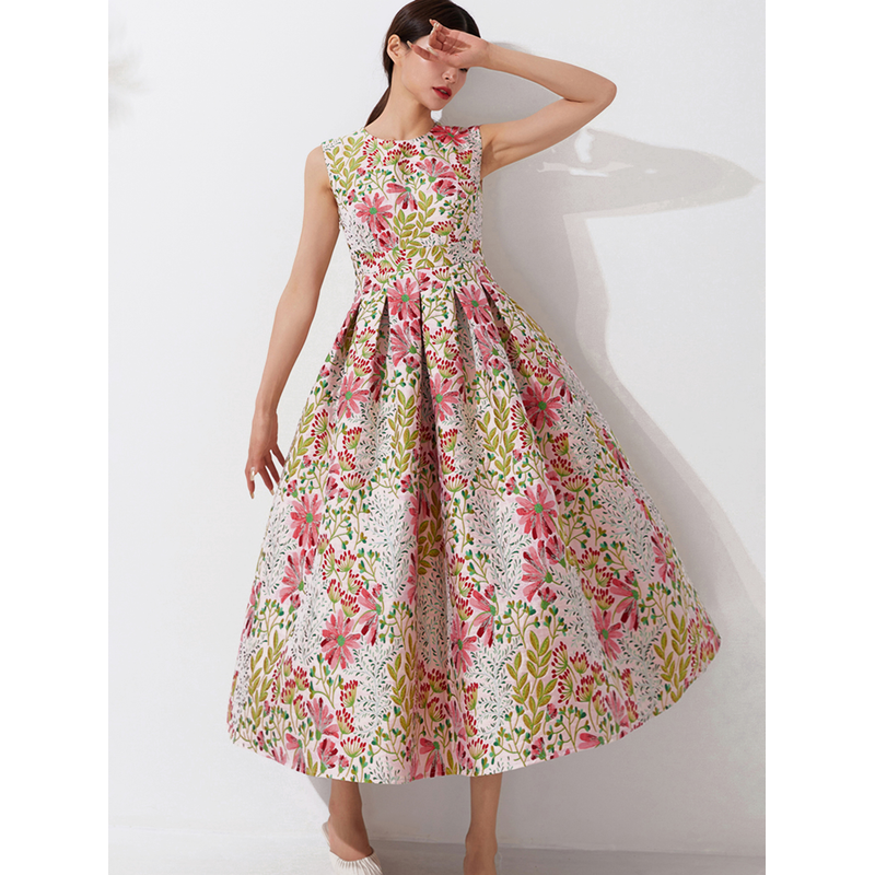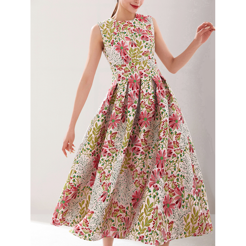 DEVCHATA Summer Elegant Jacquard Women Long Maxi Luxury Dress Floral Fashion Party Robe Femme Vintage Vestido Evening Clothing