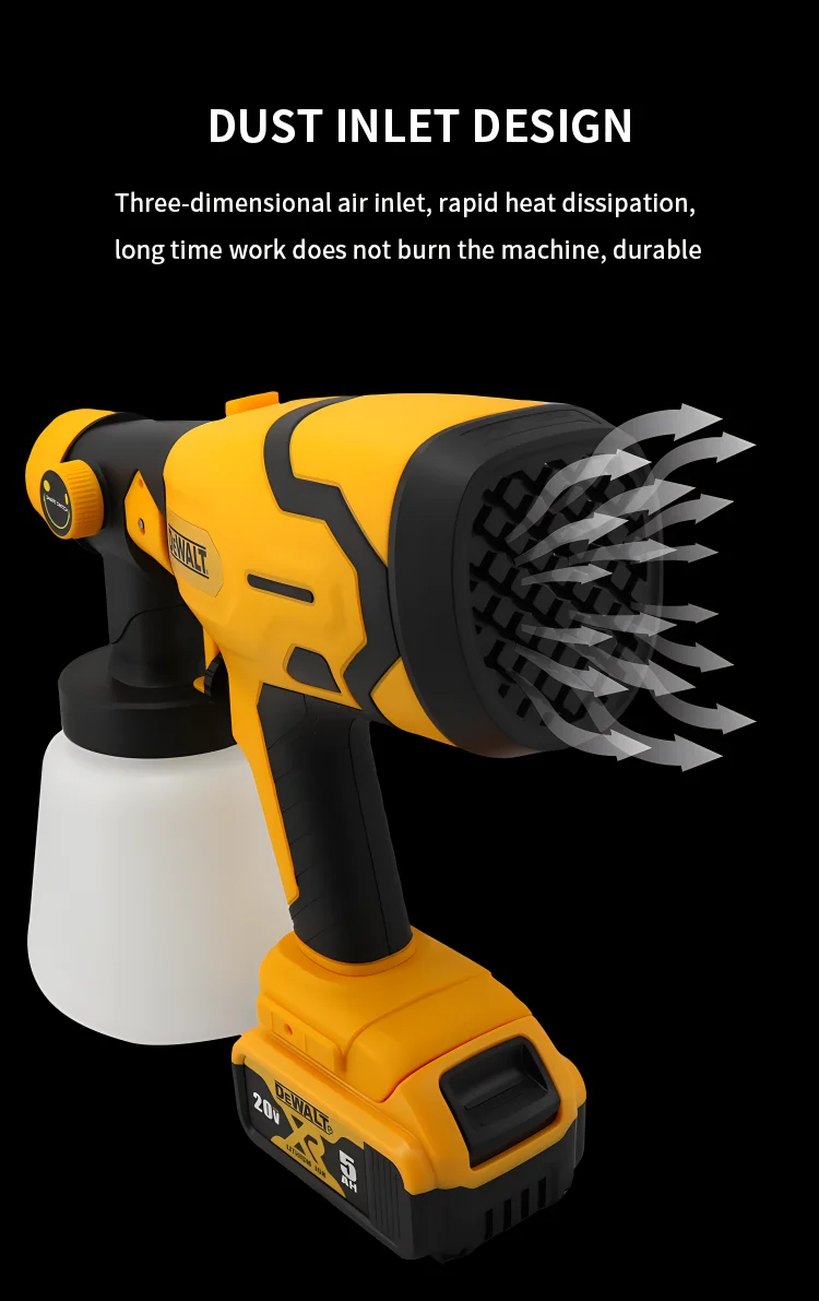 Powered by a 20V battery (not included), this spray gun offers portability and convenience for on-the-go painting tasks.