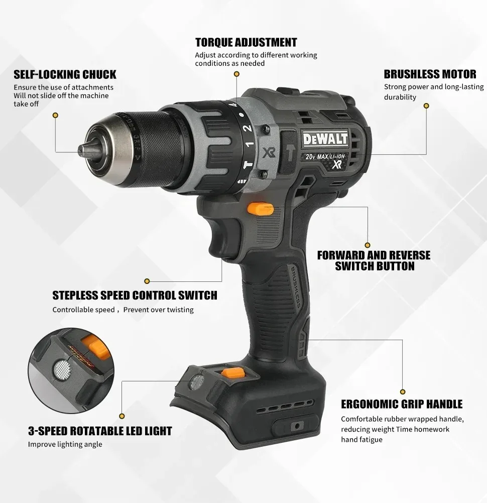 DEWALT DCD791 Compact Cordless Drill Brushless Motor Tool High orque Screwdriver 2000RPM Rechargeable Electric Tool for Home Use