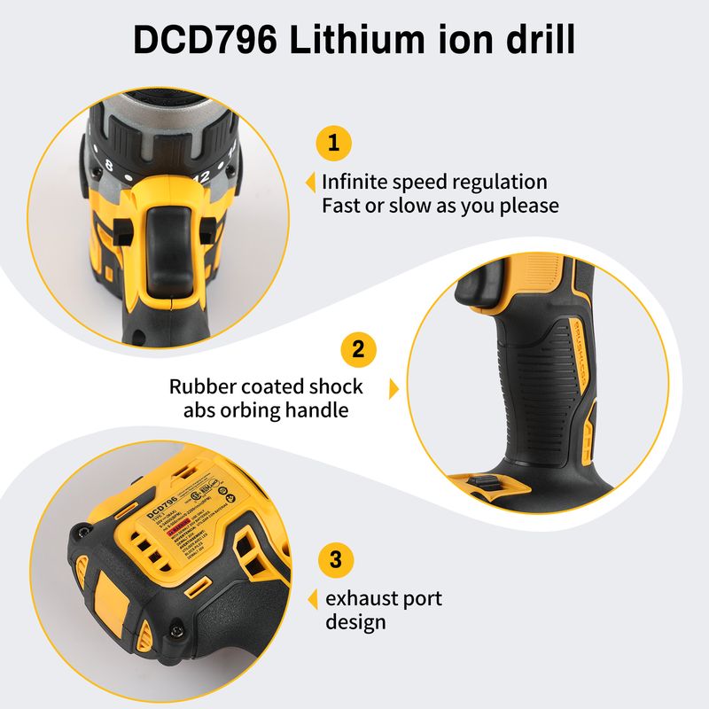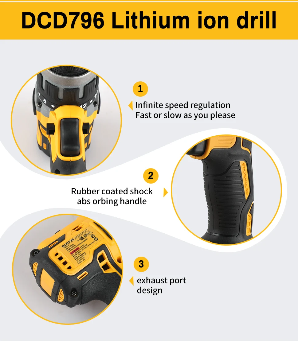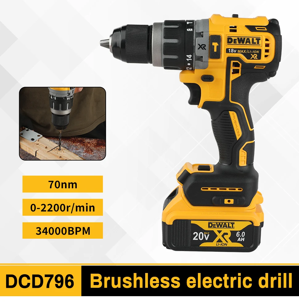 DEWALT DCD796 13mm Brushless Electric Drill Portable Screwdriver Impact Drill Rechargeable Lithium 20V Battery Power Tool