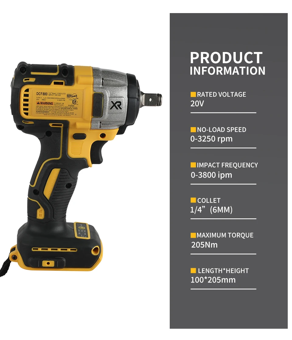 DEWALT DCF880 20V Cordless Impact Driver 0-3250rpm 205N.m Torque for Automotive Repair, Construction & Workshop Bolt Tightening
