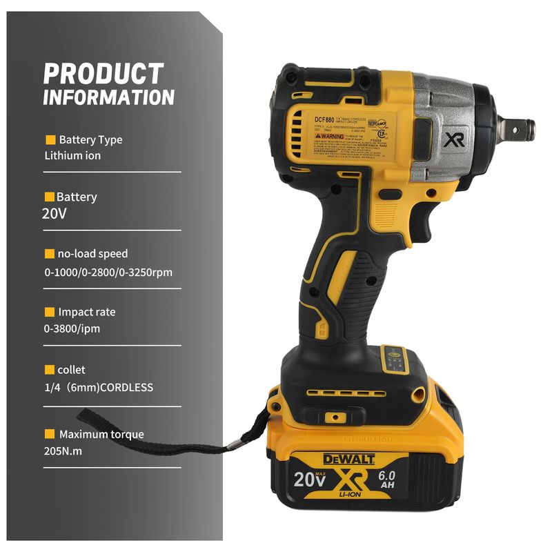 DEWALT DCF880 20V Cordless Impact Driver 0-3250rpm 205N.m Torque for Automotive Repair, Construction & Workshop Bolt Tightening