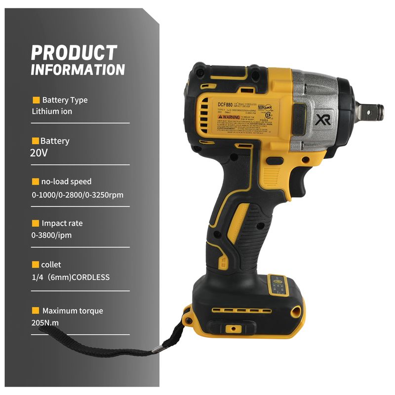 Dewalt DCF880 Rechargeable Cordless Impact Wrench , Lithium Electric Battery, Power Tools, Original, 2300RPM, 13mm, 20 Nm
