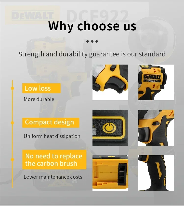 DEWALT DCF922 20V Max XR Brushless Cordless Impact Wrench with Large Torque Variable Speed Electric Rechargeable Tools Pilot