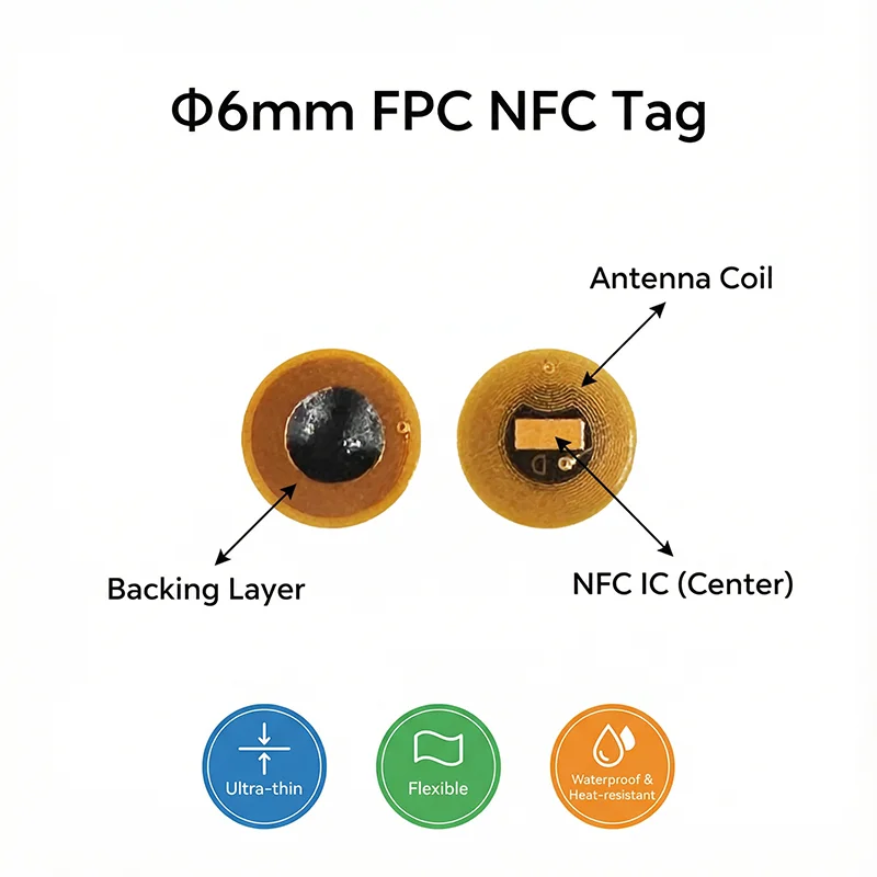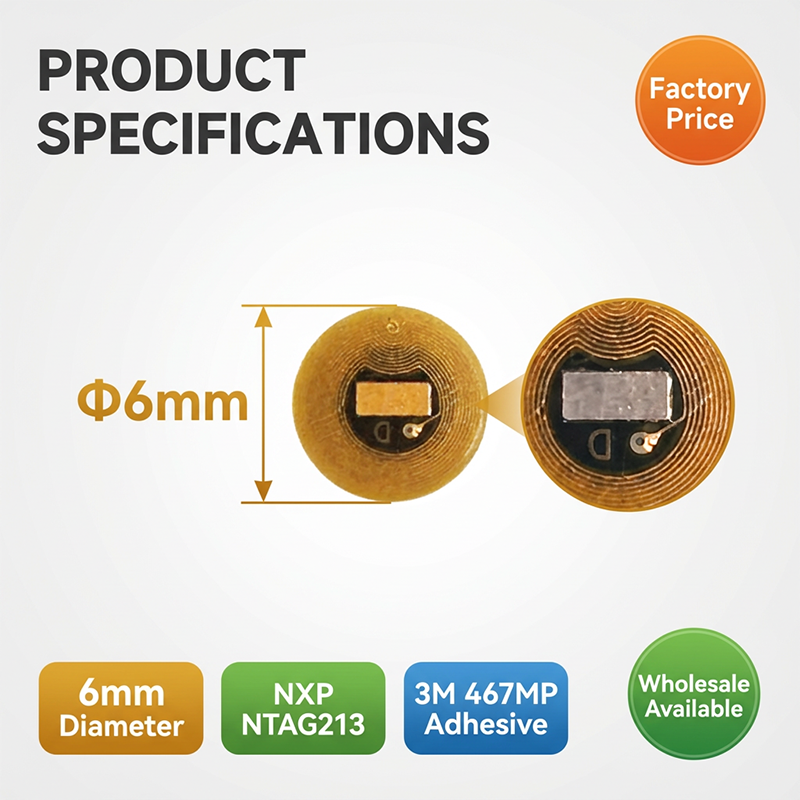 Diameter 6mm NXP NTAG213 NFC Tags Programmable RFID Stickers Round Waterproof Flexible FPC NFC Labels for Phones Wearables