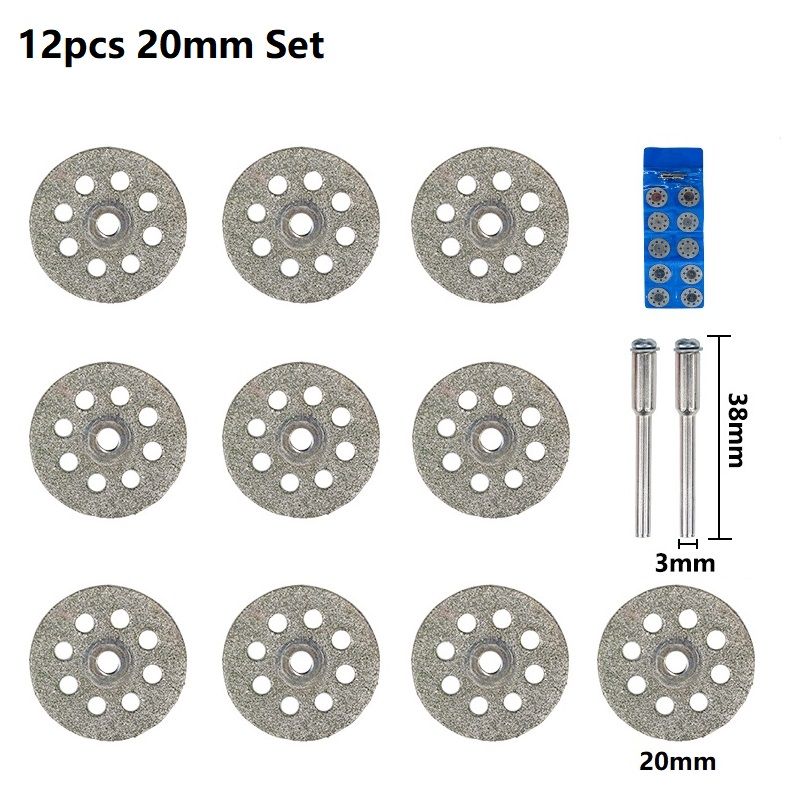 Diamond Saw Blade12 Pcs 20-30mm With 3 mm Mandrel for Dremel Rotary Tools Mini Cutting Disc Stone Glass Tile Cut Metal