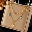 DIEYURO 316L Stainless Steel Butterfly Moon Lock Blue Eyes Pendant Necklace For Women New Multilayer Choker Chain Jewelry Gifts