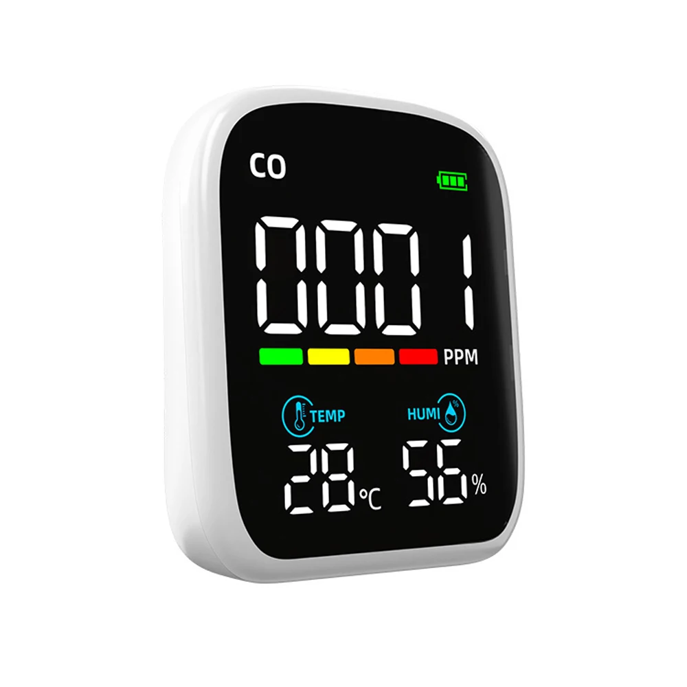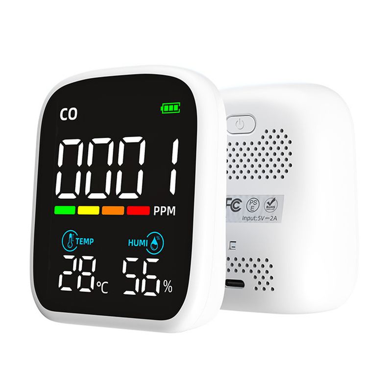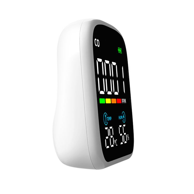 This portable air quality monitor adopts an electrochemical NDIR sensor and a high-precise temperature and humidity sensor, with stable performance and high detection accuracy, supporting real-time monitoring of CO concentration, temperature, and relative humidity in the air. Digital LED display, with ultra-wide viewing angle, so you can see the readings at a glance. 3D porous housing with multiple ventilation holes designed for real-time air circulation convection. The sensor and theair are fully contacted, highly sensitive, and accurate in detecting small particle content. It can be widely used on a variety of occasions.