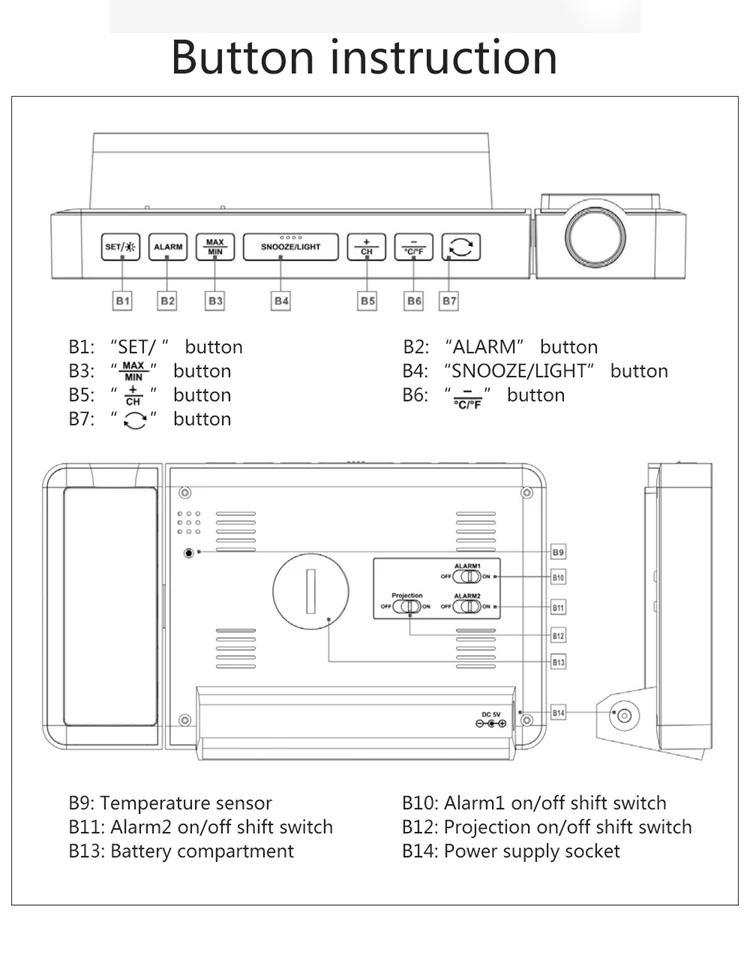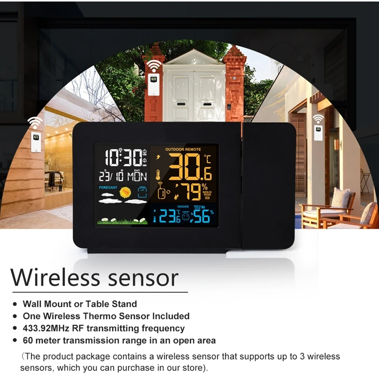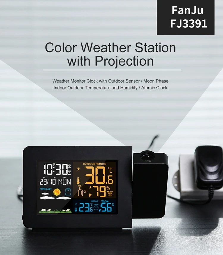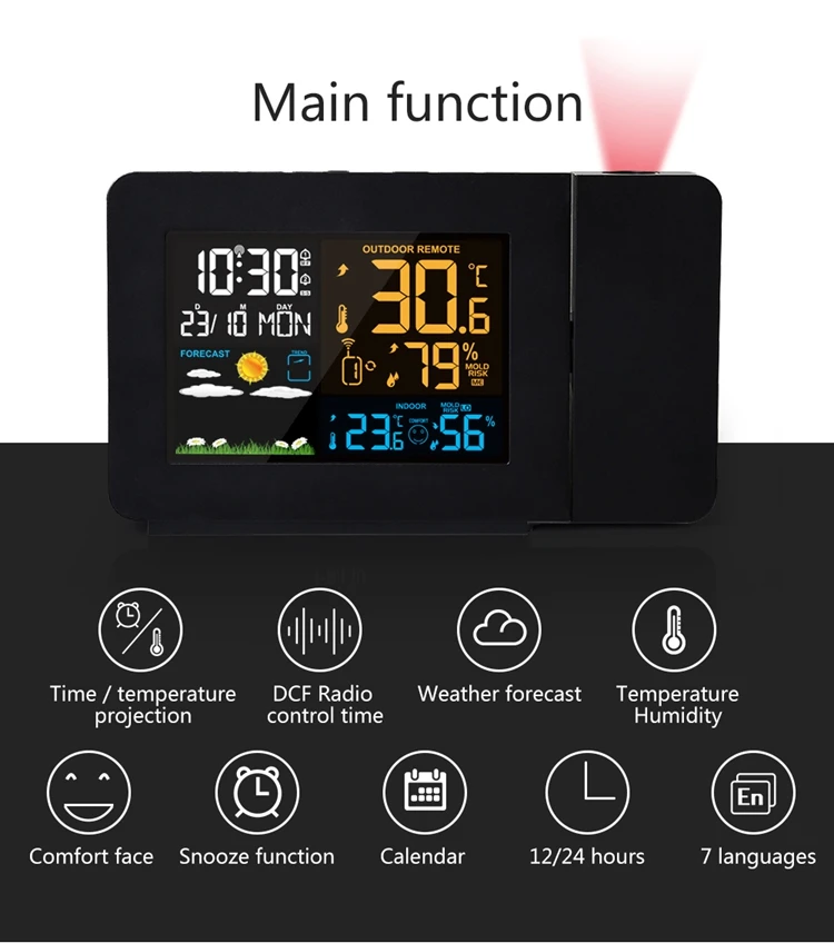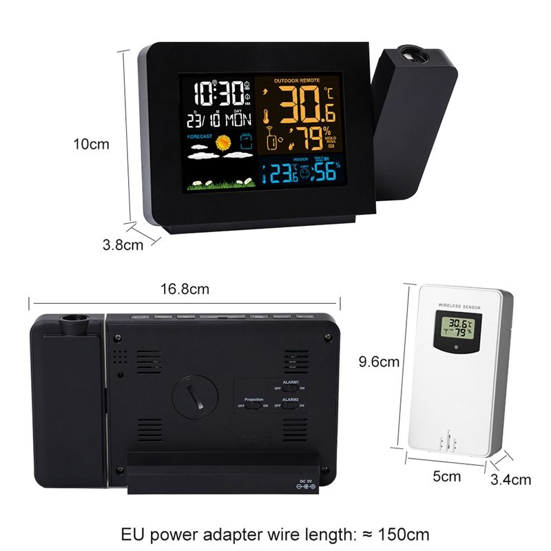 Digital Atomic Alarm Clock Color LCD Display Weather Station Radio Control Projection Time Temperature Humidity Forecast Sensor