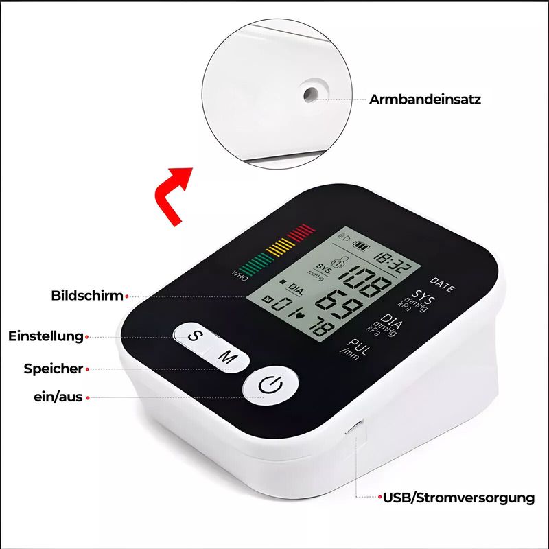 1 x Oberarm-Blutdruckmessger(Batterie nicht enthalten)