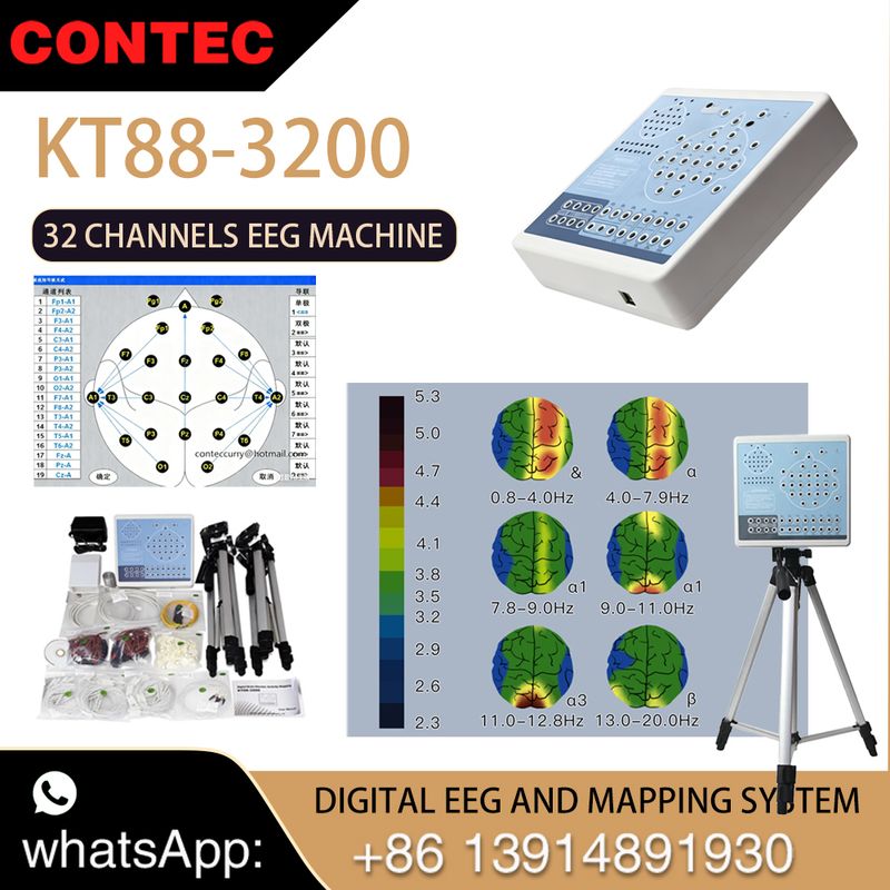 CONTEC KT88-3200 Portable 32-Channel EEG Recorder, Digital Brain Mapping System with PC Software & 2 Brackets Included