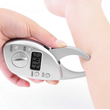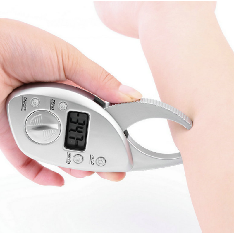 Step 3: standing, with your thumb and index finger firmly pinching the skin fold, continue to left-handed pinch the skin fold, put the electronic fat caliper claws in the above measurement.
