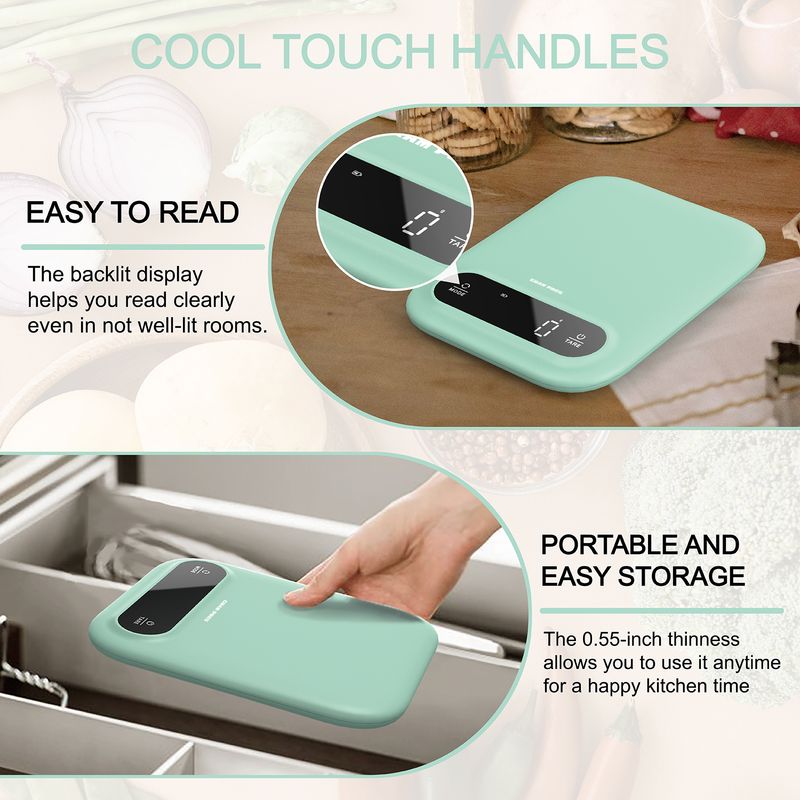 【Lightweight Design】Weighing just 220g, this compact cooking scale is not only easy to store but also perfect for portable use, whether you’re cooking at home or outdoor.