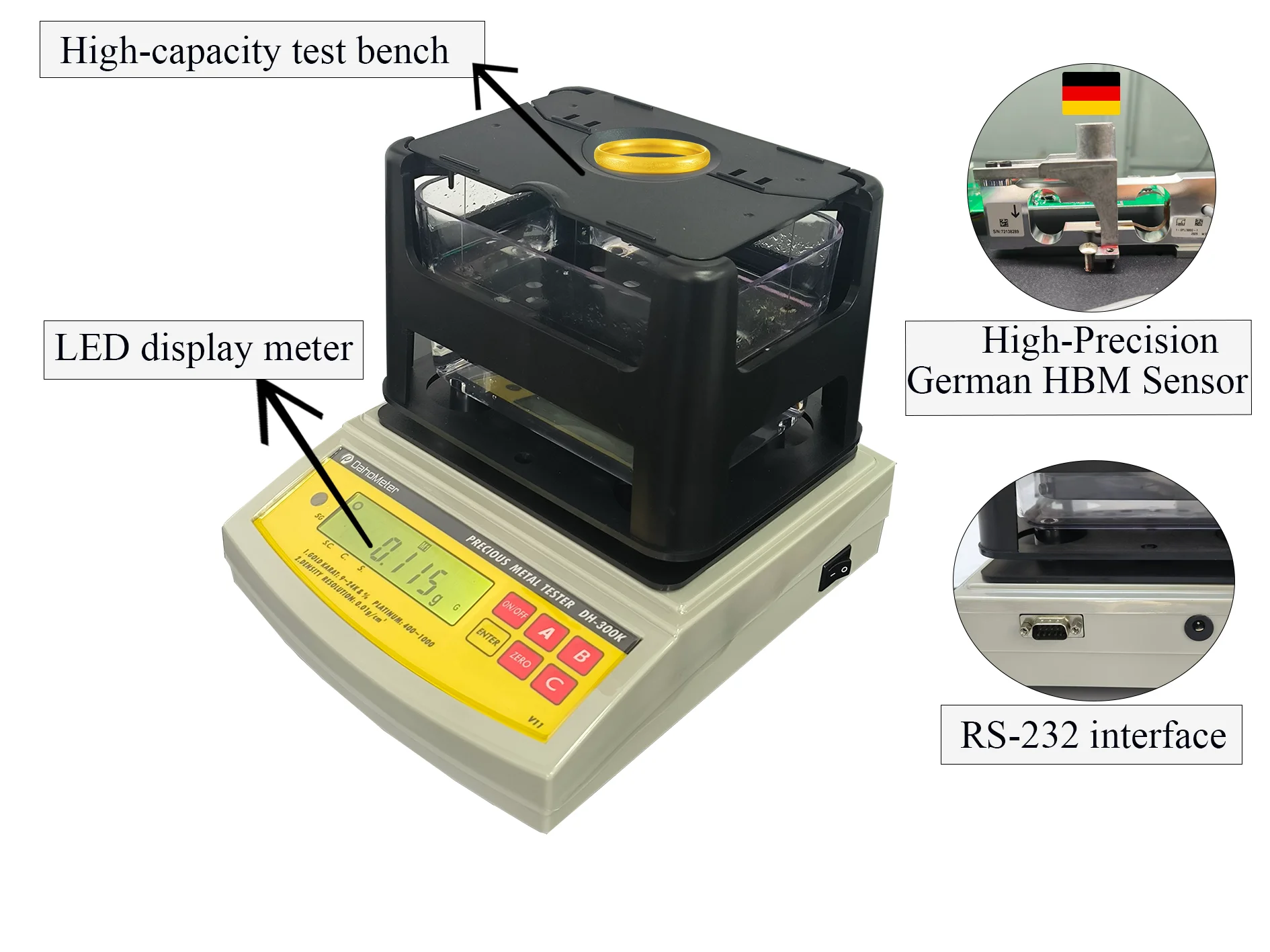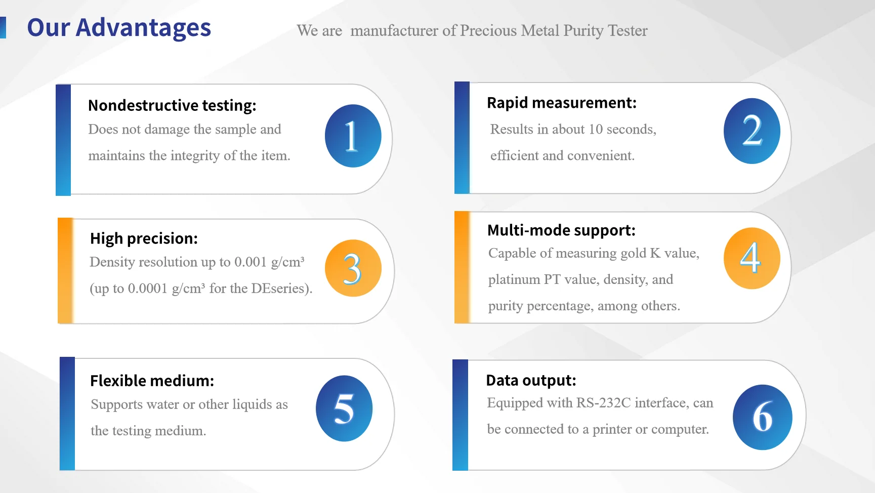 K value of gold, PT value of platinum, density value,purity percentage can be measured.