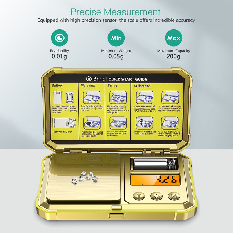 3. Comes with 50g calibration weight, easy re-calibration to ensure accurate readings all the time; low battery and overload indication, convenient for customers to replace the battery in time and use it correctly, extending the life of the product