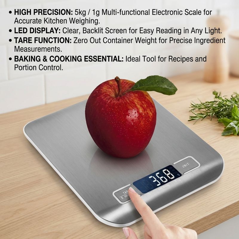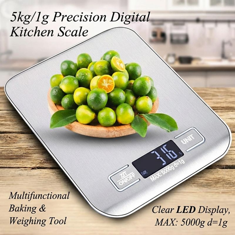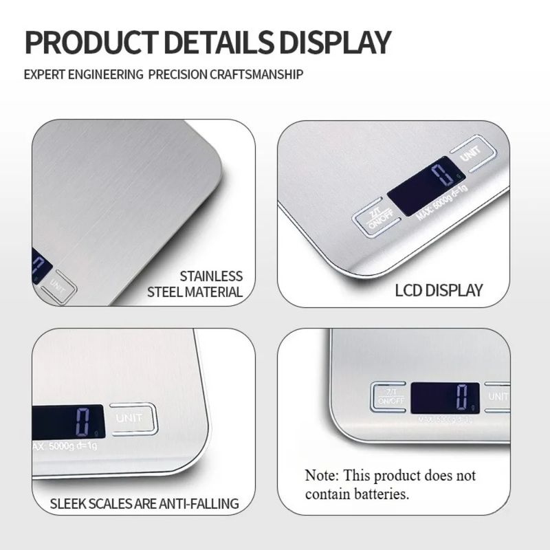 Digital Kitchen Scale LED Display 5kg/1g Stainless Steel Panel Electronic Scales Home Jewelry Food Snacks Weighing Baking Tools