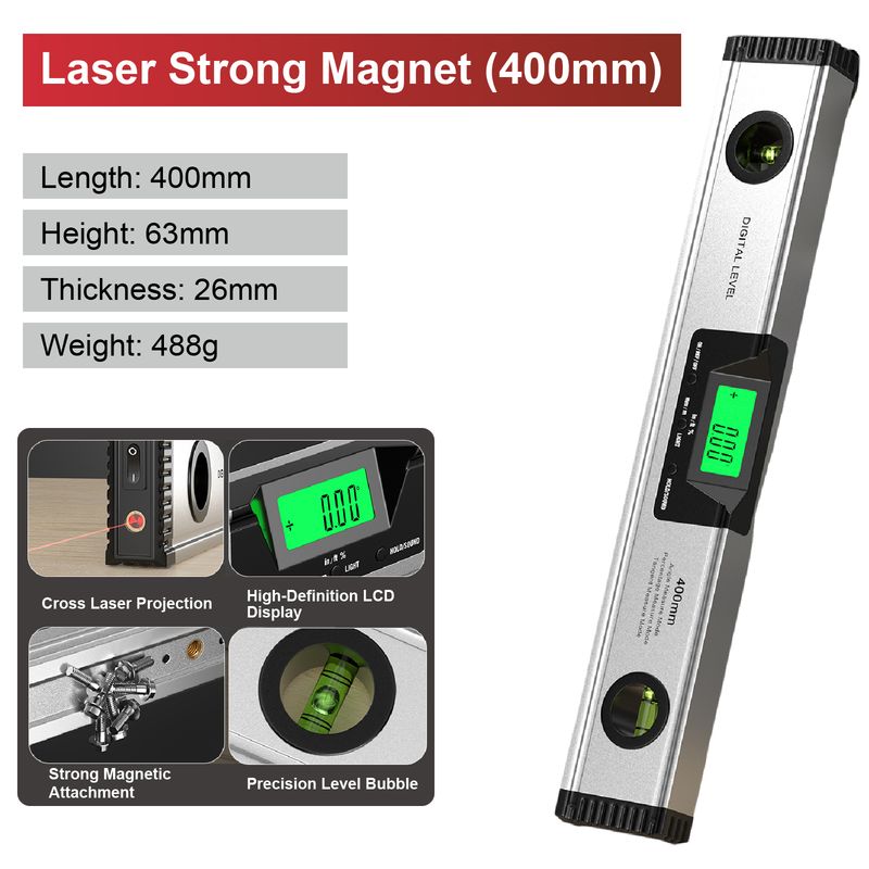 Digital Laser Level with LCD Display – precisely measures horizontal, vertical, and angular alignment. Durable aluminum alloy body, strong magnetic base, and laser line projection for fast leveling and marking. Ideal for interior construction, decoration, and precision installation tasks.