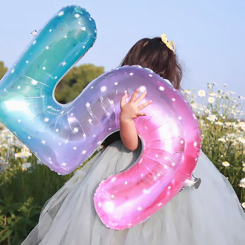 Digital Number Balloon, Aluminum Foil, Gradient Rainbow, Birthday Party, Wedding, Christmas Decoration, 40"