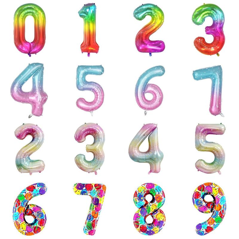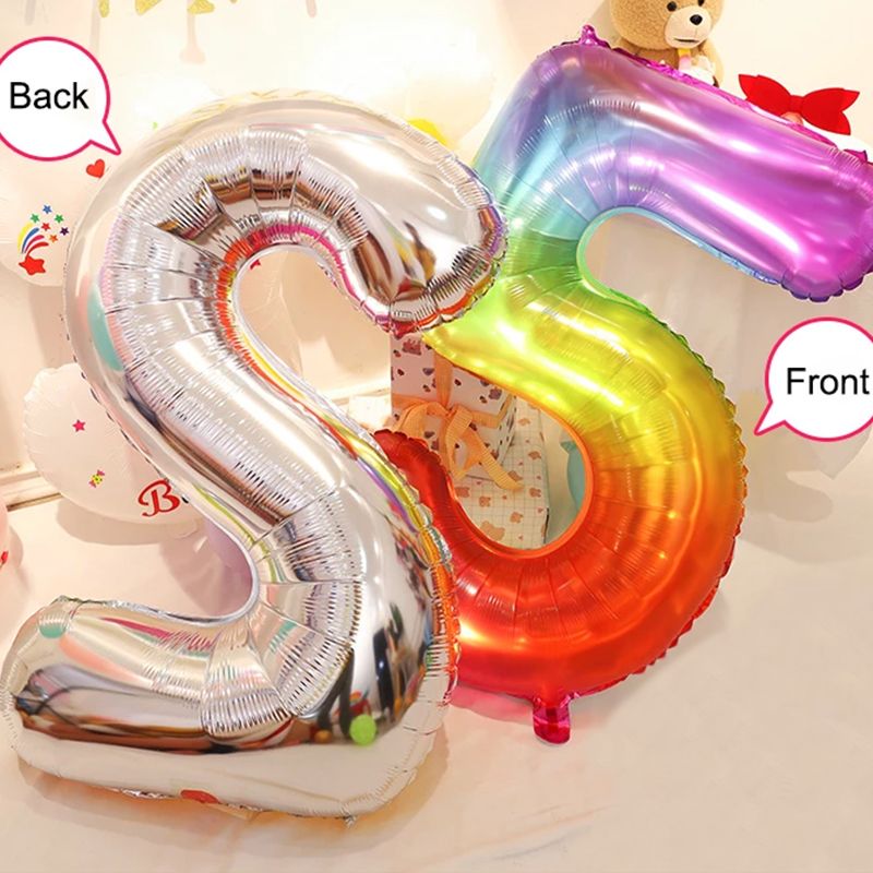 Digital Number Balloon, Aluminum Foil, Gradient Rainbow, Birthday Party, Wedding, Christmas Decoration, 40"