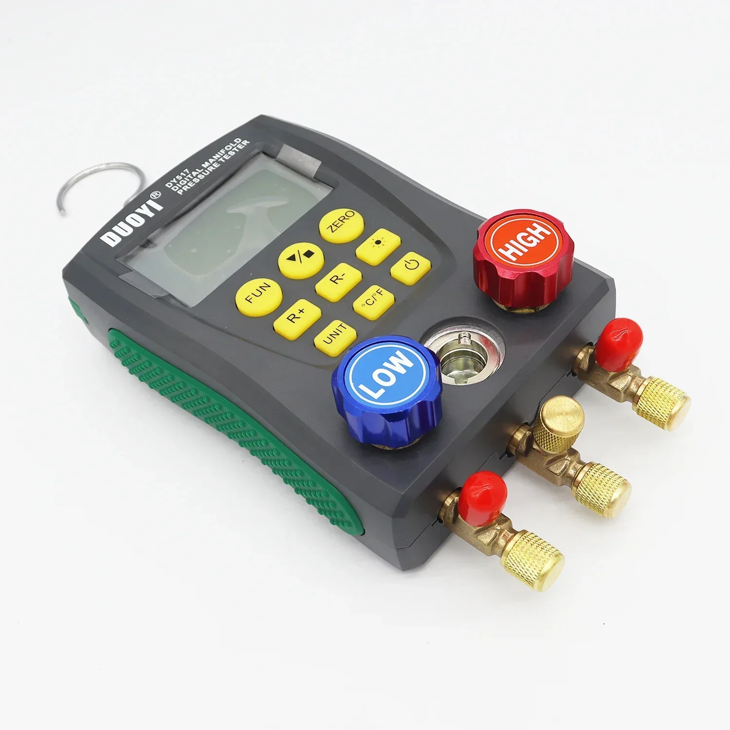 Large-size liquid crystal display, LCD backlight support, data display clear and easy to read, convenient light operation. Long-life valve switch, 1/4-inch standard interface design to ensure that the instrument's durability and versatility.