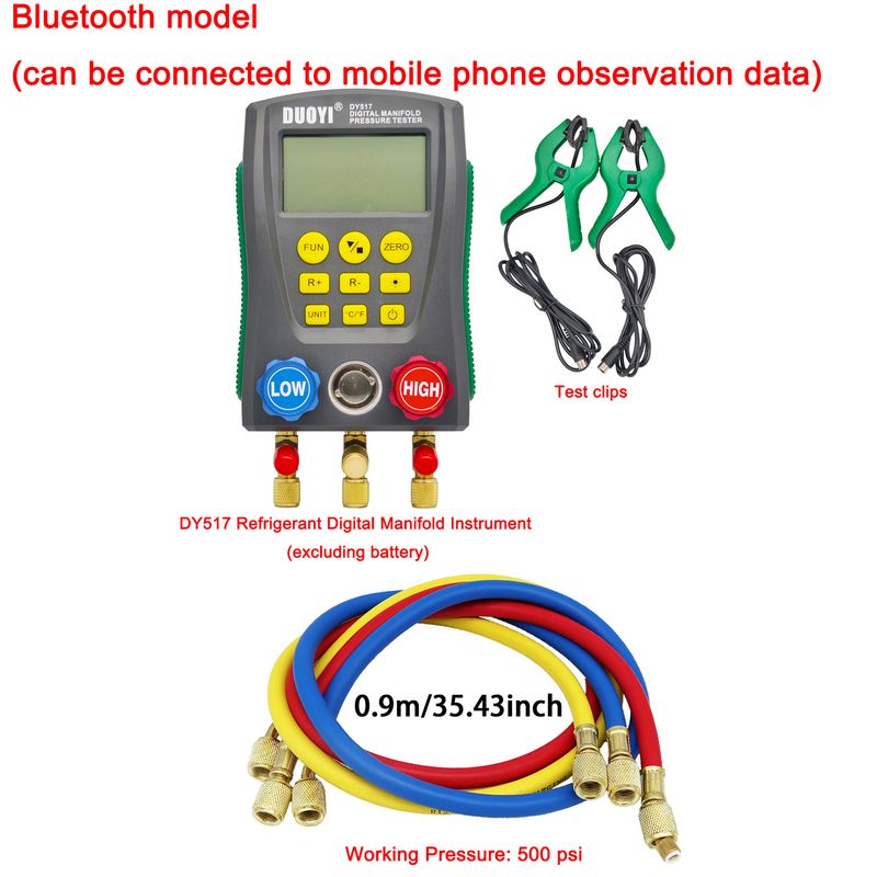 Digital refrigeration pressure gauge, air conditioning temperature detector, multi-function vacuum pressure test tool kit