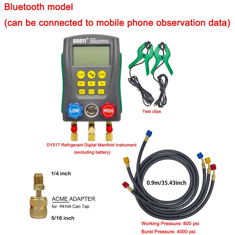 Also it tests percentage of vacuum measurement; pressure leak measurement, leak time speed record. It is deserved to have this multi-functional, accurate and simply operated digital manifold let you do the job right.