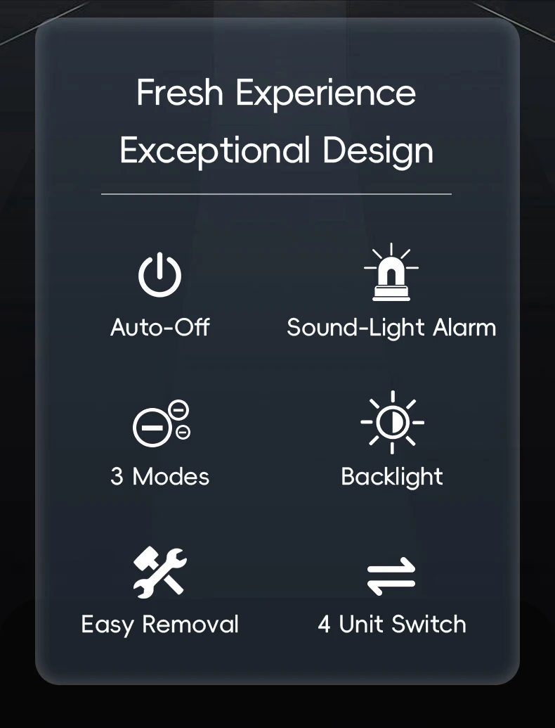 Sound and Light Alarm: Features a sound and light alarm for instant feedback, enhancing efficiency in low-light conditions.