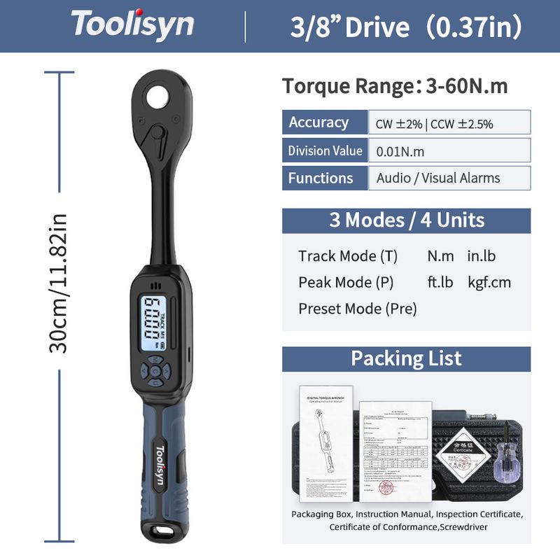 ★Easy to Use:Our lightweight and professionally calibrated digital torque wrenches are engineered with high-quality materials that display real-time torque values in N.m,ft.lb,in.lb,kgf.cm, only need to simply operate the buttons,can clearly see the value conversion between the measurement units,which is more accurate and convenient than a mechanical wrench.Excellent tool for tiny, tight, and narrow working environment, that is ideal for bicycle, motorcycle, car,home or professional, and other industrial uses.