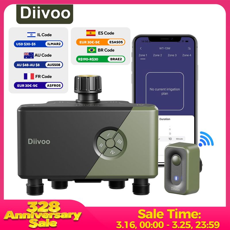 Diivoo Garden WiFi Watering Timer 4 Zones Automatic Irrigation Timer Watering Systems Controller with Rain Delay Manual Watering