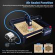 1. Cut faster and deeper: The laser engraving machine is equipped with an air assist device for wood and metal. Large and stable air blows away the smoke and debris generated when the laser engraving machine is working, helping the engraving machine to cut faster and deeper, improve laser efficiency, and save your time. 2. Clean surface and smooth edge: The air assist device uses air to quickly reduce the temperature of the surface of the cutting material, prevent deformation and discoloration caused by high temperature, and ensure smooth lines, complete patterns, and clean material surfaces. 3. Keep low noise vibration: The air assist device has the advantages of low noise and small vibration. The vibration generated by the air assist device during the operation of the laser cutting machine will not affect the positioning of the laser head, ensuring continuous cutting of the lines and complete patterns 4. Protect the laser head: The air assist device has a stable air output system that can blow away acceptable debris and smoke generated during the operation of the laser head, protect the lens of the laser head from pollution and extend the service life of the laser head. Compatible: Compatible with a variety of brands on the market, such as NEJE, DIMIFUN and other brands