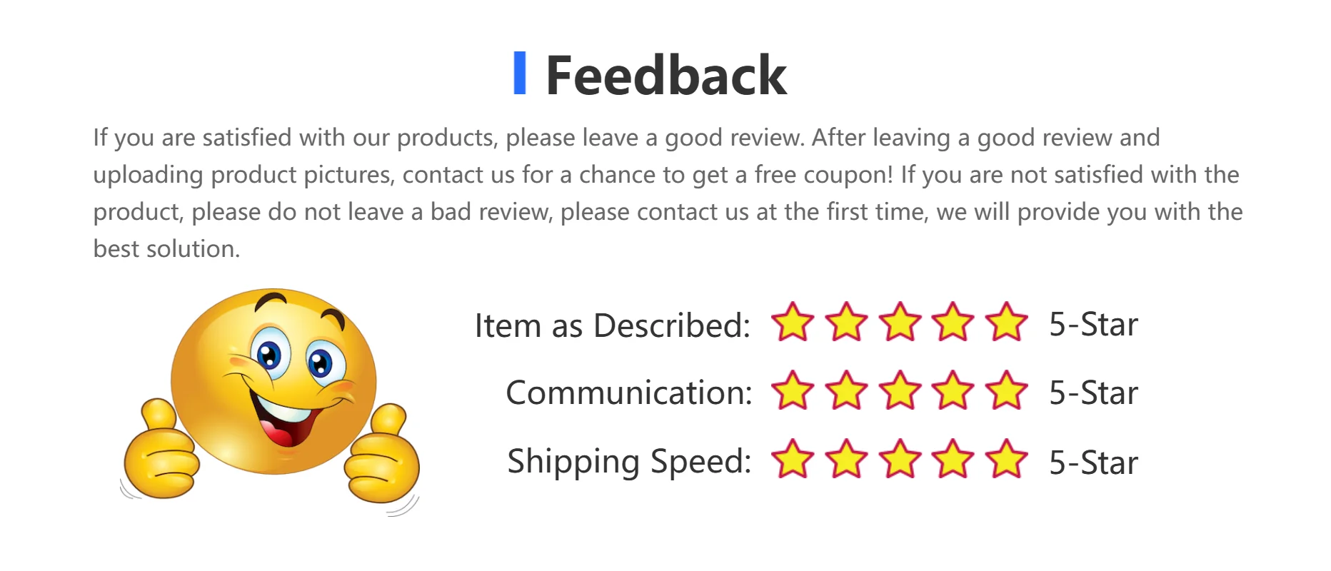If you receive a damaged, defective, or incorrect item, please contact us within 7 days of delivery and provide clear photos of the product and packaging. We will arrange a replacement or full refund at no additional cost.
