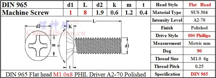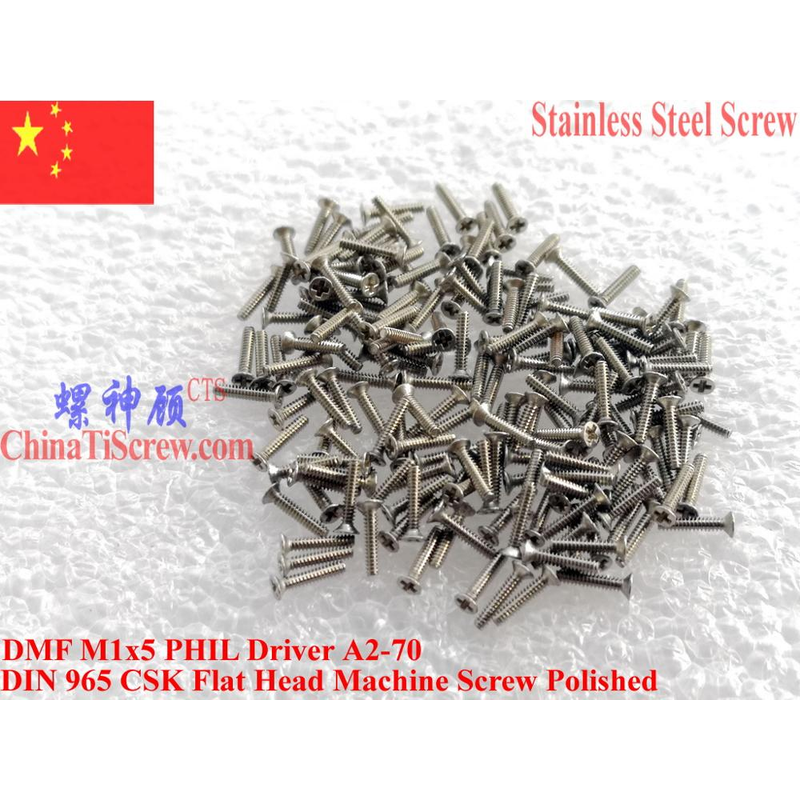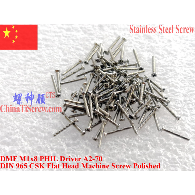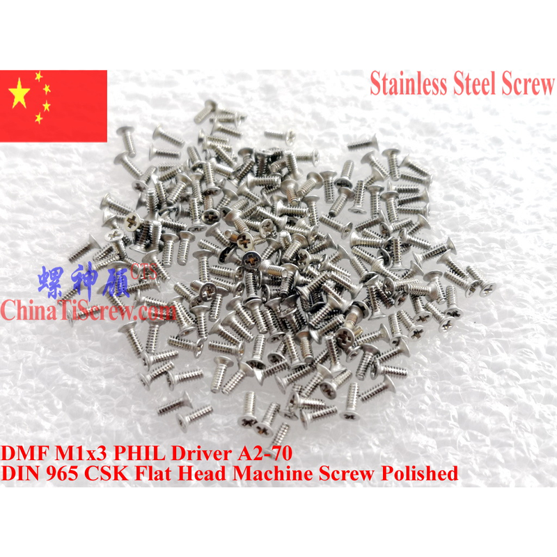 We have DIN 965 Stainless steel screws M1.0x2 M1.0x3 M1.0x3.5 M1.0x4 M1.0x5 M1.0x6 M1.0x8 in stock Flat Head 00#PHIL driver A2-70 Polished.