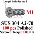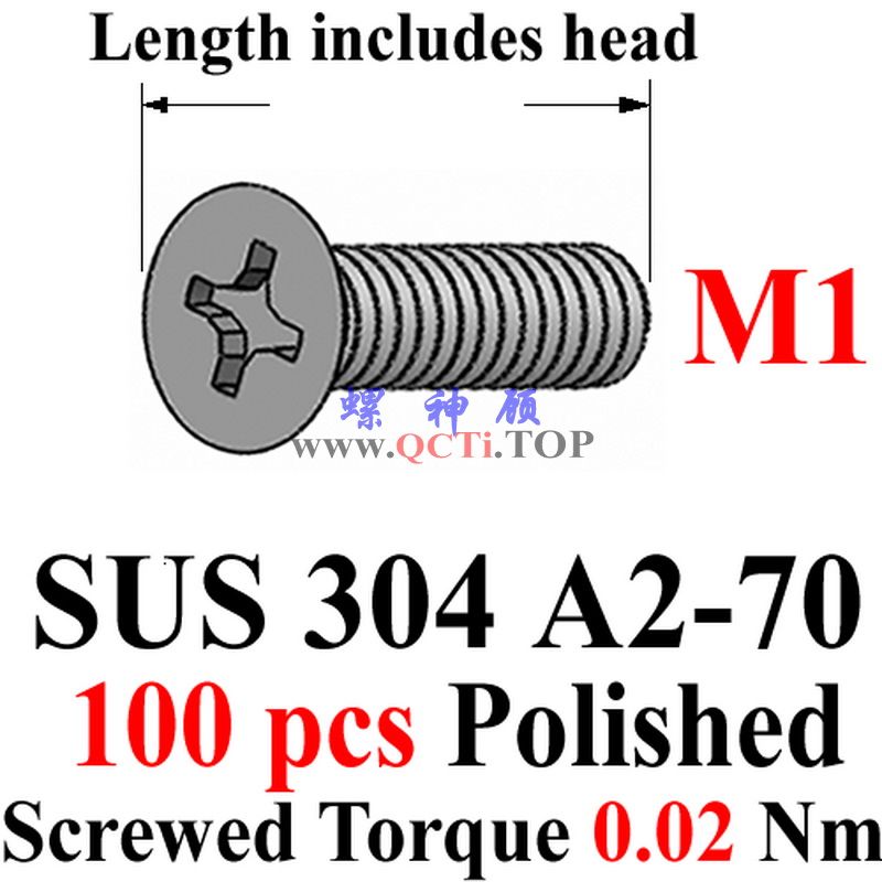 DIN 965 stainless steel M1.0 screws M1x2 M1x3 M1x3.5 M1x4 M1x5 M1x6 M1x8 Flat Head 00# PHIL Driver A2-70 Polished QCTI Screw