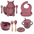 Dinnerware Set Plates and Bowl Baby Silicone Tableware Cup Plate/Tray Bibs Children Non-slip Free Silicone Plate for Baby Dishes