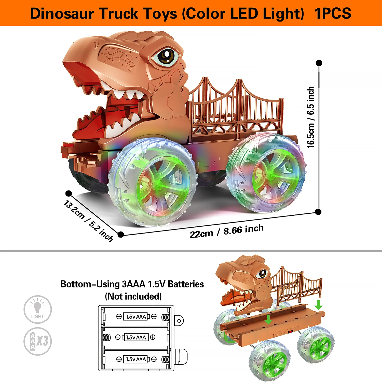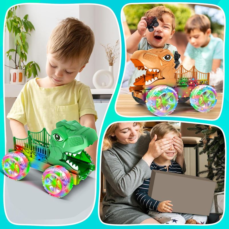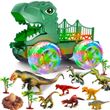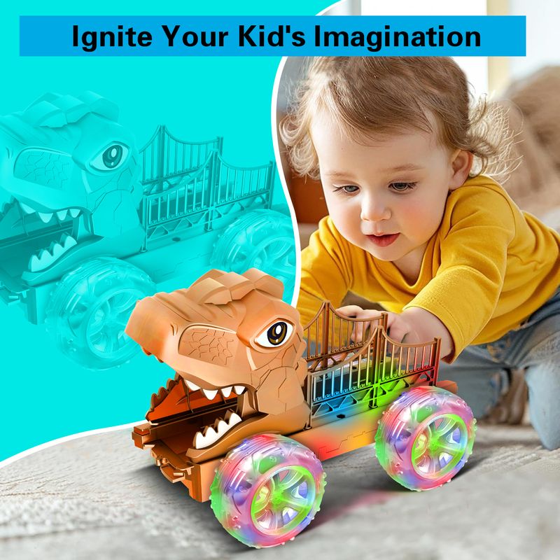 Dinosaur Truck Toys for Kids 3-6 Years Tyrannosaurus Transport Car Carrier Truck,LED Color Lights Play Set for Boys and Girls