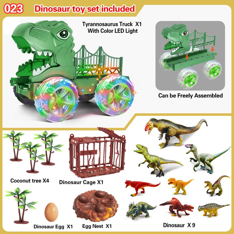 Dinosaur Truck Toys for Kids 3-6 Years Tyrannosaurus Transport Car Carrier Truck,LED Color Lights Play Set for Boys and Girls