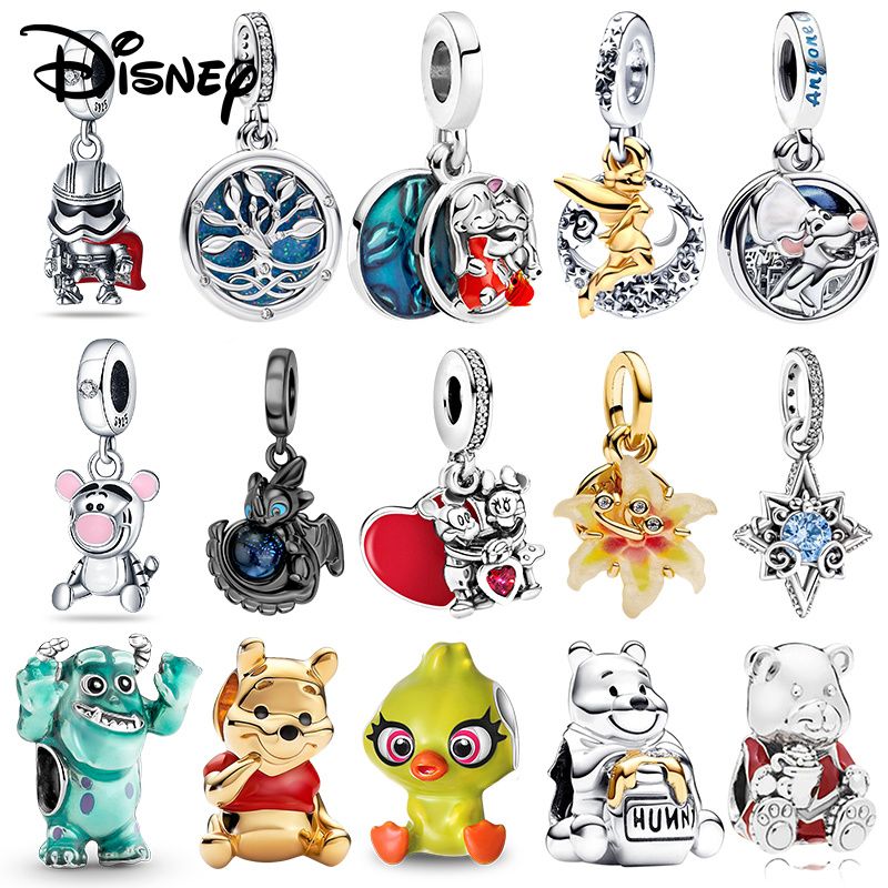 Disney 925 Silver Mickey Stilch And Winnie Bear Pendant Beads Suitable For Original Diy Bracelets Exquisite Jewelry Gifts