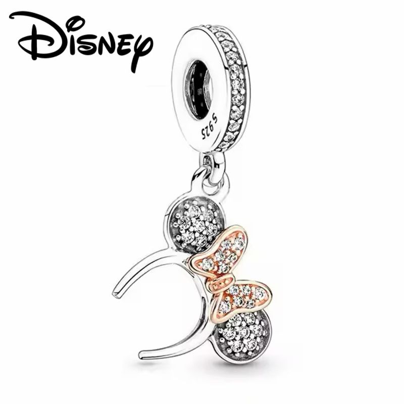 Disney 925 Silver Minnie Stitch Sully Flying Elephant Beaded Charms, Fits 3mm Bracelet Necklace, Womens DIY Jewelry Gifts