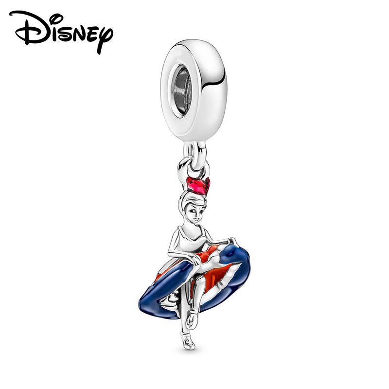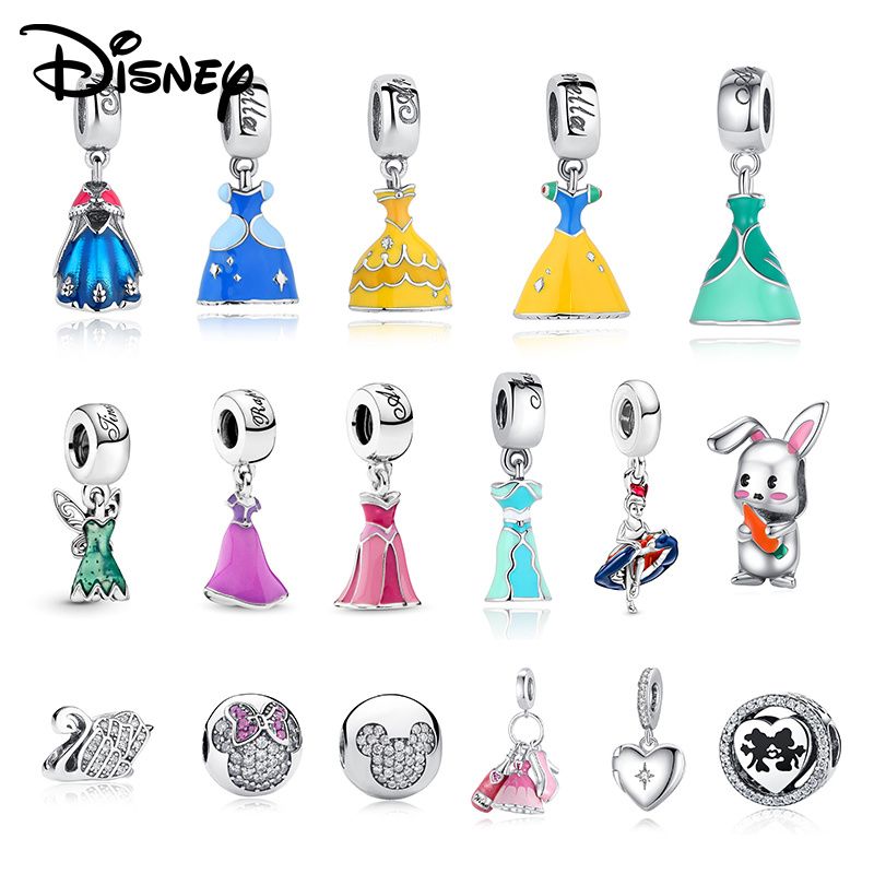 Disney 925 Silver Princess Dress and Mickey Mouse Pendant Beads Suitable for Girls DIY Bracelet Suitable for Birthday Parties