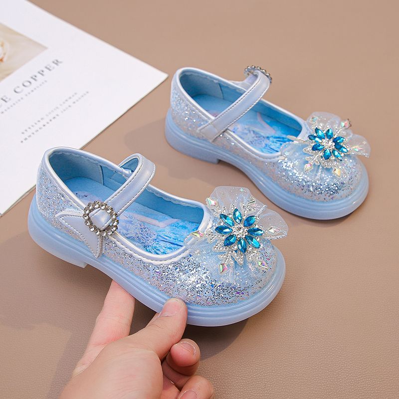 Disney Anti Slip Sole Girls' Luminous Pu Leather LED Light Shoes Frozen Children's Glitter Elsa Princess Shiny Shoes Size 23-34