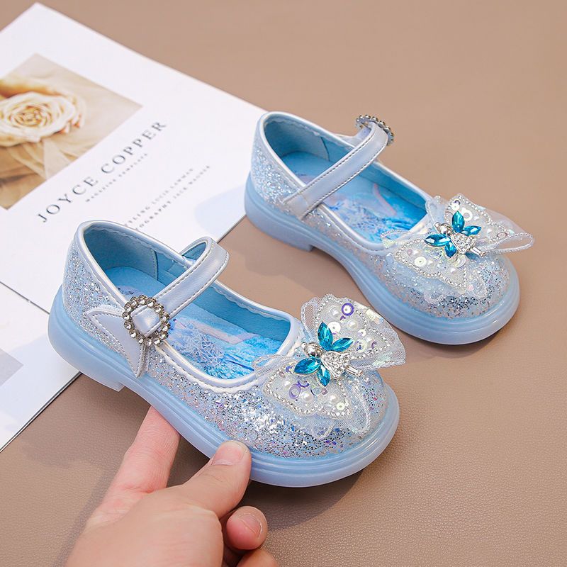 Disney Anti Slip Sole Girls' Luminous Pu Leather LED Light Shoes Frozen Children's Glitter Elsa Princess Shiny Shoes Size 23-34